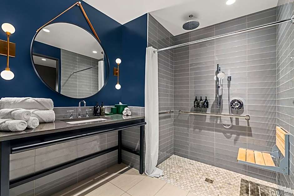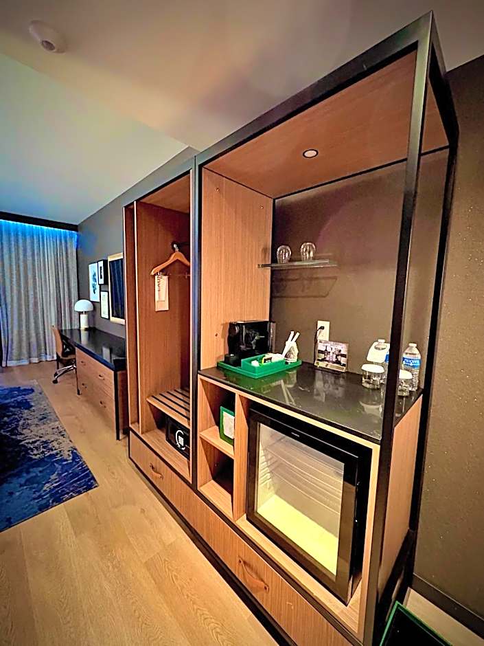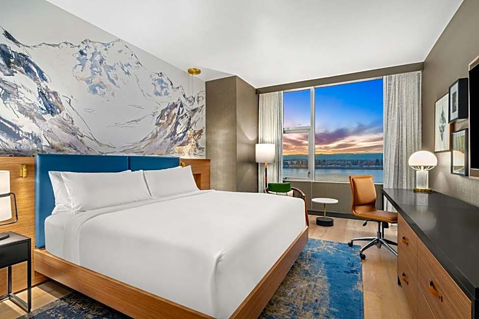 The double room features city views. The unit offers 1 bed.